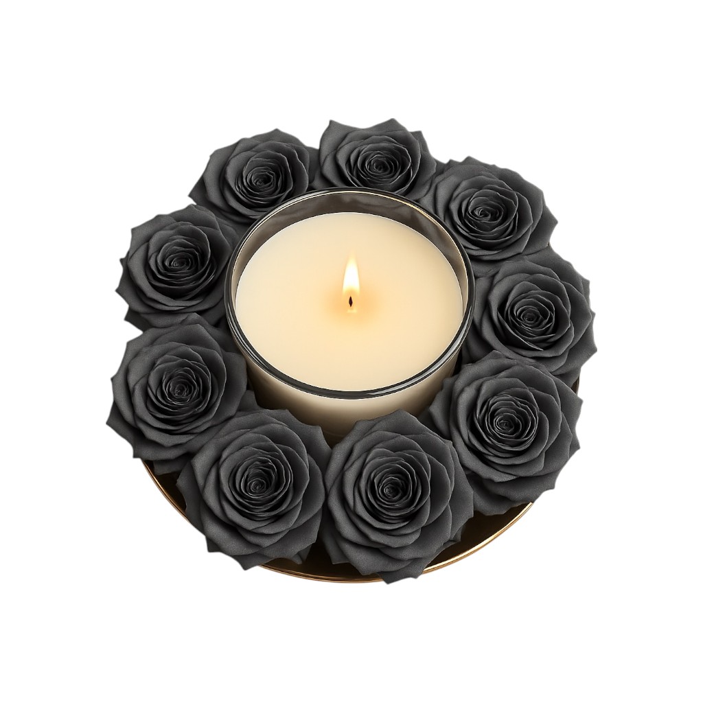 An astonishing compilation of AMMA Roses with our AMMA by ANNASA Signature Candle. Composition Dimensions: 20*10