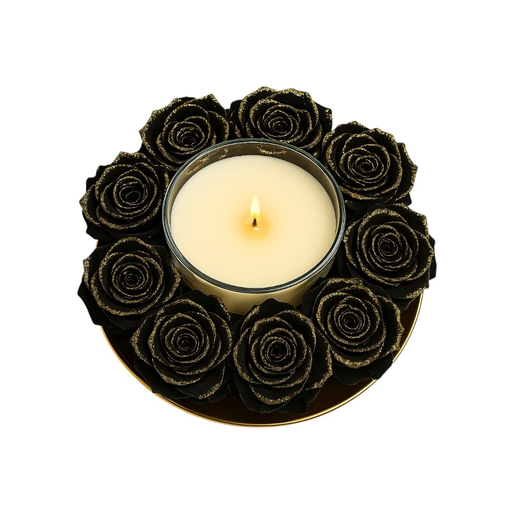 An astonishing compilation of AMMA Roses with our AMMA by ANNASA Signature Candle. Composition Dimensions: 20*10