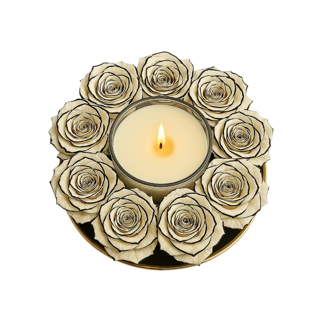 An astonishing compilation of AMMA Roses with our AMMA by ANNASA Signature Candle. Composition Dimensions: 20*10